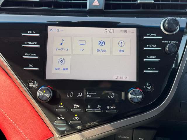 トヨタセーフティセンス/ETC/ドラレコ(前後)シートヒーター(運・助)純正ディスプレイオーディオ(CD・DVD・AM・FM・USB・BT・MiraCast・フルセグ)革シート(赤)