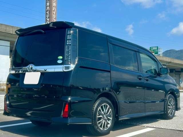 ボディの躍動的なラインが美しく映える、一番スタイリッシュな角度です!ブラックの艶やかな質感が、ヴォクシーの魅力をさらに際立たせてくれていますよ( *´艸`)