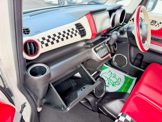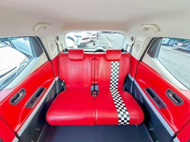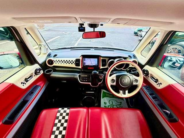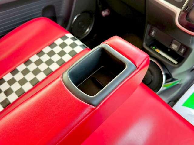 ドアを開けた瞬間に広がる、赤を基調としたチェッカーフラッグ柄の特別な空間!まるでアメリカンのダイナーにいるようなお洒落な世界観は、スラッシュの限定車ならではの確かな品質ですね(^^♪