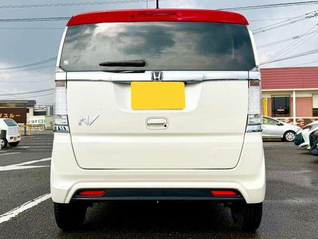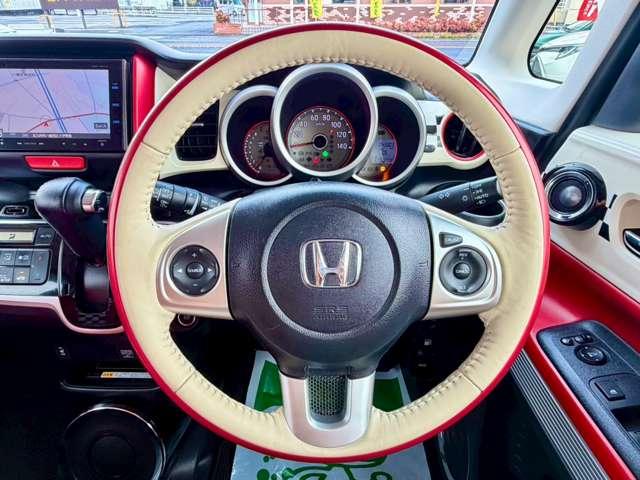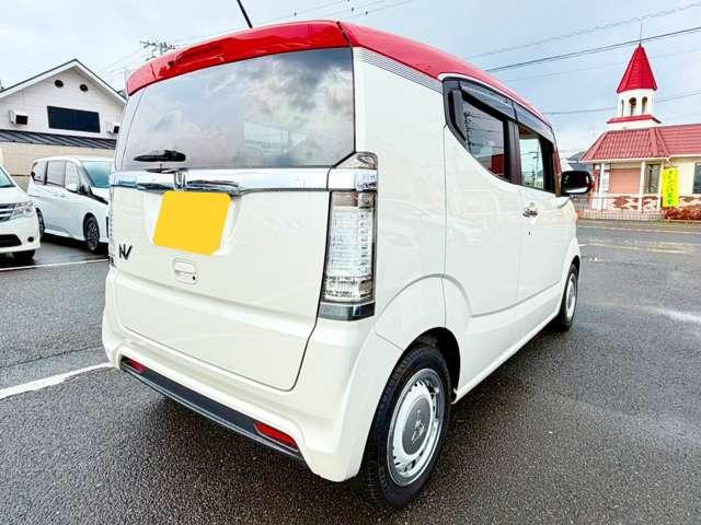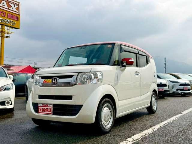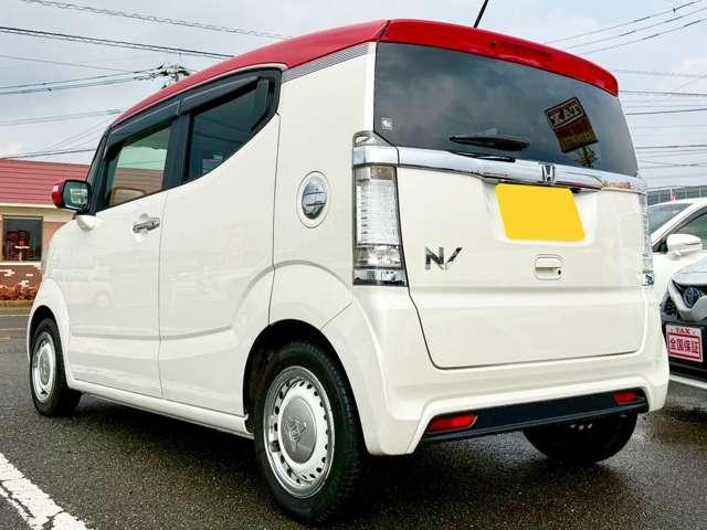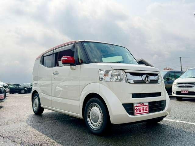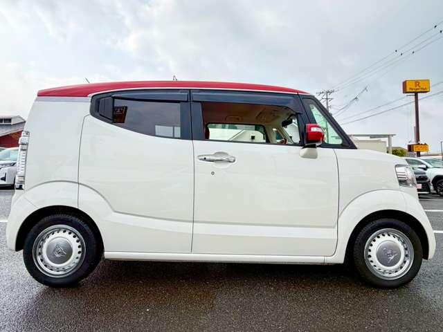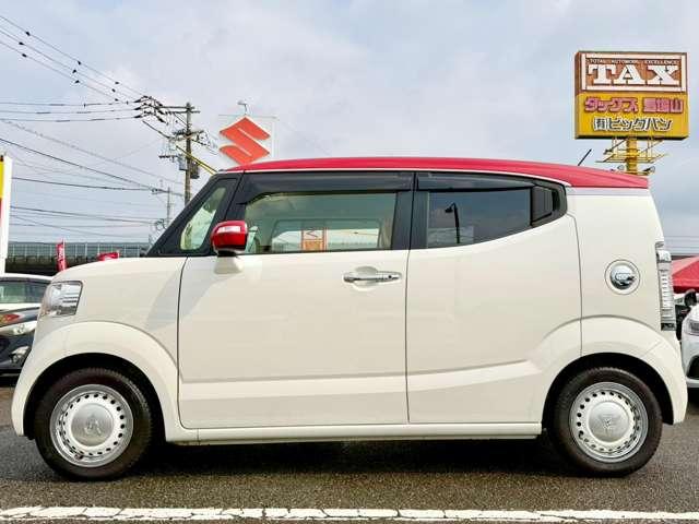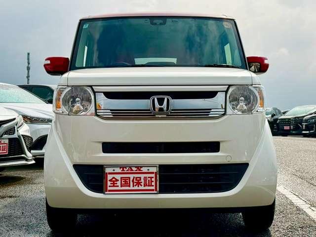 プレミアムホワイトパールの輝きに、赤いルーフのアクセントが効いています!他のN-BOXとは一味違う、知的で遊び心あふれるフロントマスクに仕上がっていますね(^^♪