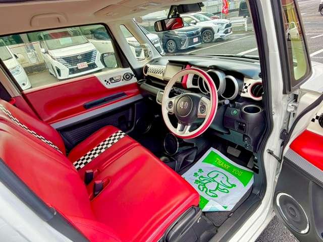 赤いルーフの2トーン外装に合わせた、個性的で質感の高い専用インテリア!一目で「特別な一台」とわかる、洗練されたデザインが自慢のポイントです★