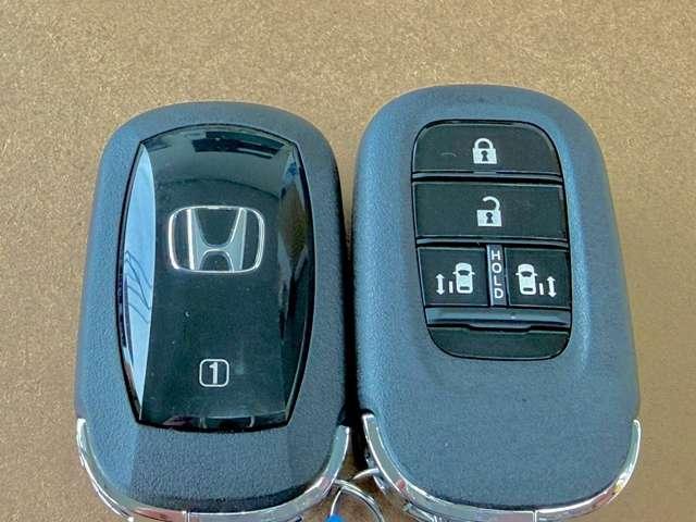 荷物が多い時もキーを取り出さずにサッと開錠♪ エンジン始動も指先ひとつで完了です(‘・ω・´) スライドドアの開閉もリモコンでできるので雨の日の送迎も大助かりです★