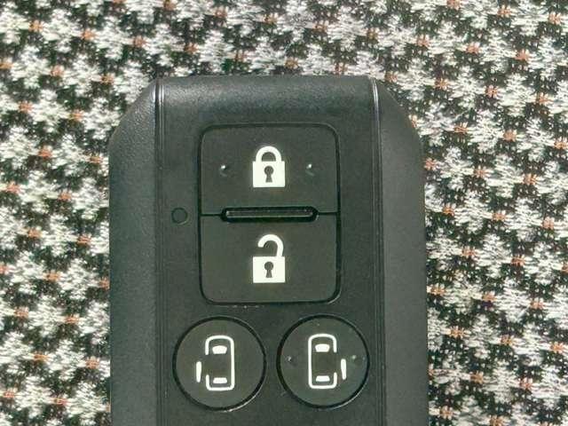 荷物が多い時もキーを取り出さずにサッと開錠♪ エンジン始動も指先ひとつで完了です(‘・ω・´) スライドドアの開閉もリモコンでできるので雨の日の送迎も大助かりです★